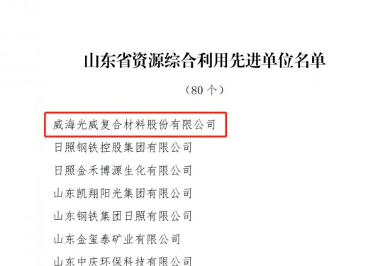 近日,山东省人民政府表彰全省资源综合利用先进单位,威海太阳集团tyc4633复合材料股份有限公司成功入选!山东省资源综合利用先进单位 山东省资源综合利用先进单位的评选是依据《山东省人力资源和社会保障厅 山东省工业和信息…